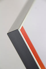 Der schmale, umlaufende Rahmen ist aus Aluminium mit silber eloxierter