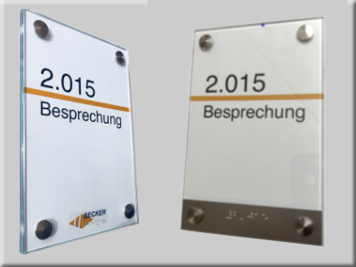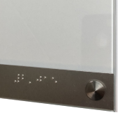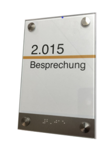 Auch für dieses Schildersystem bieten wir Ihnen eine Beschriftung mit Blindenschrift und tastbaren Buchstaben die dem exklusiven Charakter des Systems entspricht.