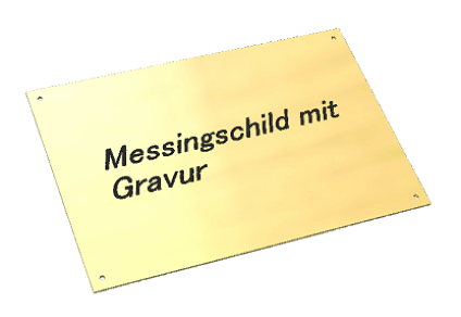 Messingschild 300 x 200mm, mit Gravur. Text farbig ausgelegt.