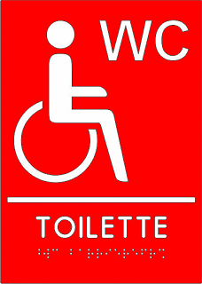 Türschild "BEHINDERTEN WC" 150 x 210mm mit Blindenschrift.