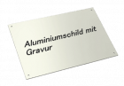 Aluminiumschild 200 x 150mm, mit Gravur, Text farbig ausgelegt.